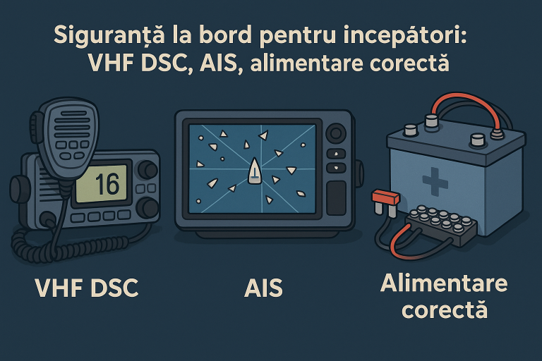 Rezumat rapid: înainte de viteze și dotări spectaculoase, siguranța înseamnă comunicații fiabile, vizibilitate în trafic și alimentare electrică stabilă. Pentru începători, „minimul sănătos” este: VHF (ideal DSC) • AIS (măcar recepție) • cablare & baterii corecte.